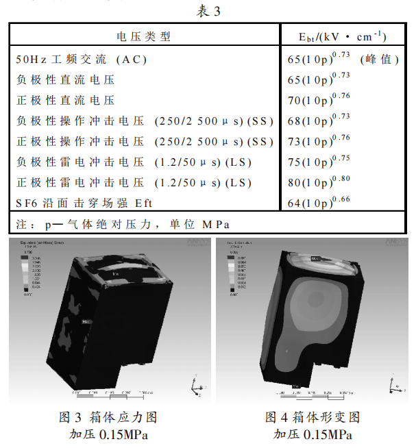 環網柜殼體形狀不同有箱式和筒式之分。由于箱式結構有利于實現進出線.配電方案的實施,但是箱式在承受壓力的局限性,使箱體不能夠承受太高的壓力。下面介紹一種環網柜氣箱的設計方法。與氣箱設計有關的環網柜額定參數見表1