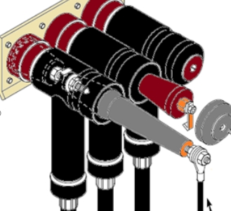 即對三工位開關接地靜觸頭裝置絕緣套管和可拆開的接地短接排,如施耐德的RM6,為了測驗電纜絕緣和查找毛病,有可能在不斷開銜接設備的情況下,經RM6向電纜引進42kV直流實驗電壓,繼續15分鐘;為了經過接地觀察窗引進直流實驗電壓,應閉合接地開關和翻開可移動接地銜接設備,實驗時需運用特殊實驗夾子。