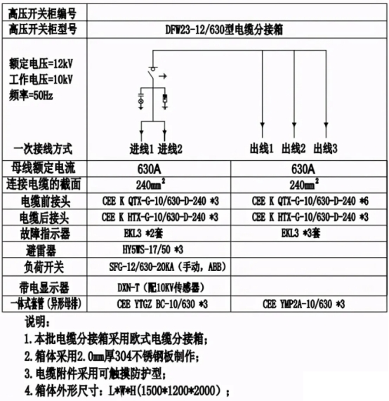 電纜分支箱用于非骨干回路的分支線路,作為結束負荷接入用電運用,適用于中小客戶會合區(qū)域進行負荷分接時的接入用電,不該接入骨干環(huán)網(wǎng)及聯(lián)絡。電纜分支箱選用電纜進線1回,出線2回或4回,出線回路數(shù)可根據(jù)運用需求選用,額定電流為630A。選用全絕緣、全封閉、全屏蔽可接觸式結構,以及選用防凝露、防內部缺點電弧外泄等方法。