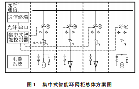 1集中式智能環(huán)網柜總體方案智能環(huán)網柜是利用現代的電力電子、自動化控制、傳感測量等技術將10kV負荷開關柜、斷路器柜、熔斷器柜、互感器與保護裝置、通信裝置、計量儀表等模塊組合在一起,實現電網一次設備與二次設備的良好結合。集中式智能環(huán)網柜整體框架如圖1所示。