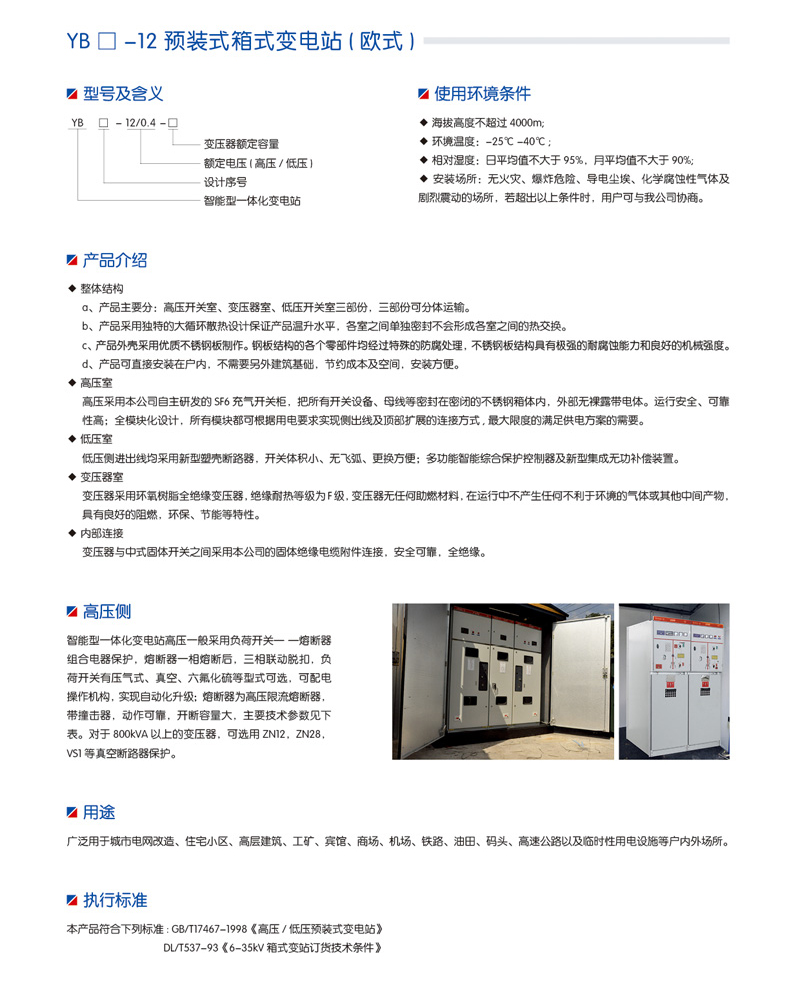 > YB-12預(yù)裝式箱式變電箱(歐式)